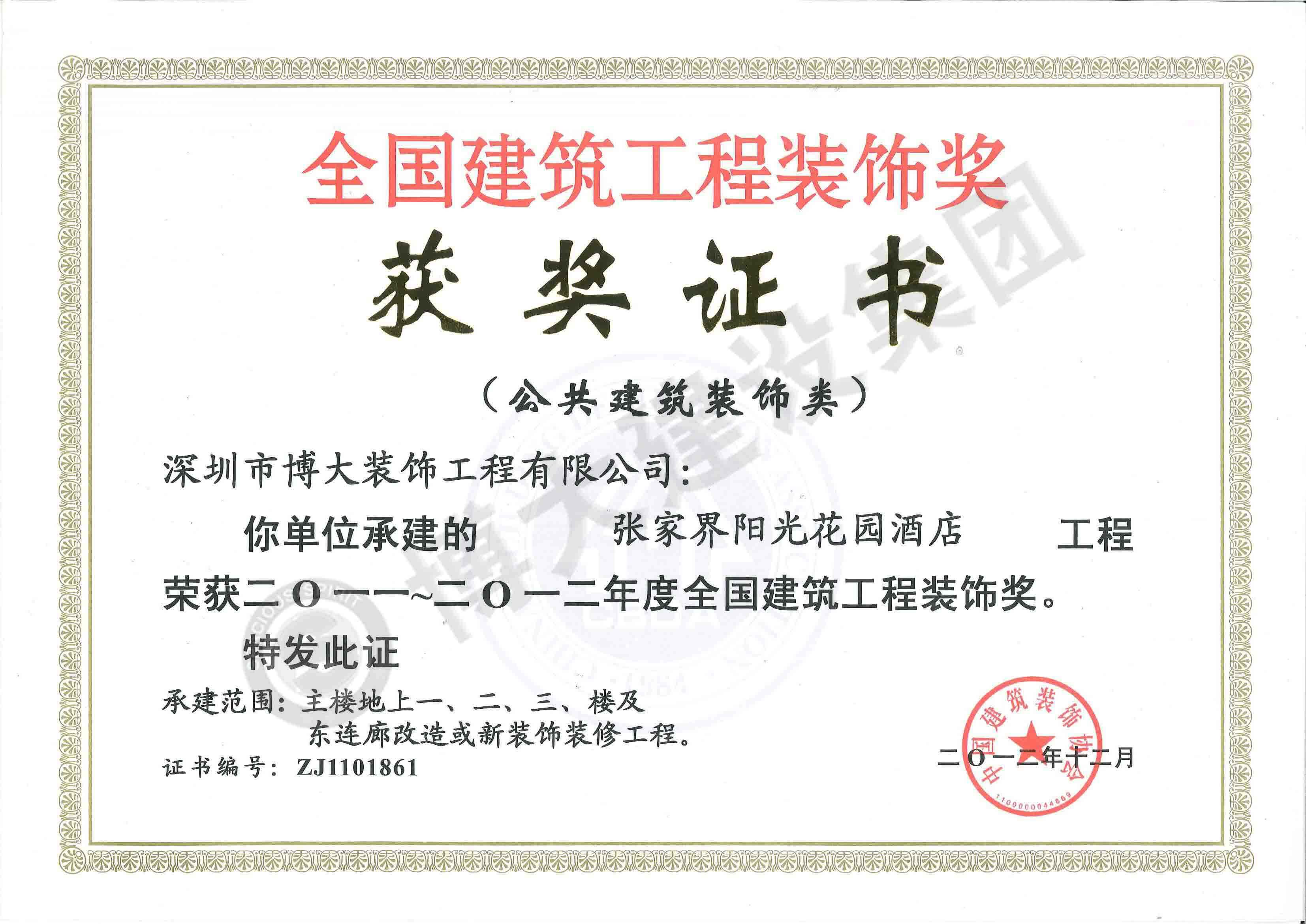 中國建筑工程裝飾獎(張家界陽光花園酒店-裝飾)