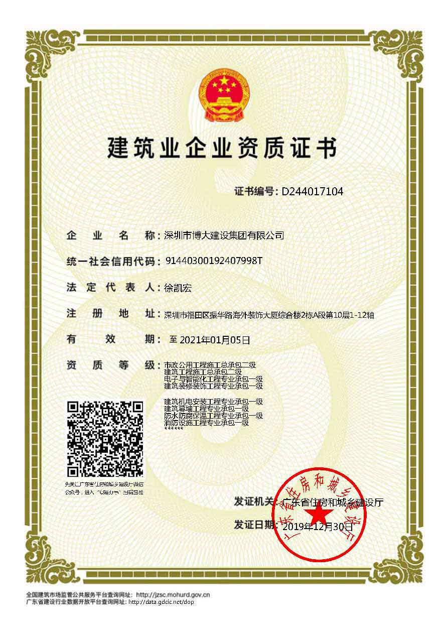 博大建設(shè)集團作為行業(yè)最具發(fā)展活力的領(lǐng)軍企業(yè),近年來發(fā)展速度迅猛,2019年繼續(xù)保持穩(wěn)步增長,業(yè)績過百億。在各級領(lǐng)導(dǎo)的關(guān)懷和全體家人的共同努力下,集團資質(zhì)建設(shè)取得新的進展,榮獲6項建筑資質(zhì),具體如下: