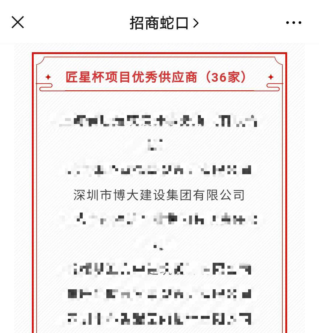 博大建設(shè)集團(tuán)作為招商蛇口的長期合伙伙伴,繼獲得“2018年度優(yōu)秀新供應(yīng)商”后,再次榮獲“匠星杯項(xiàng)目優(yōu)秀供應(yīng)商”稱號。