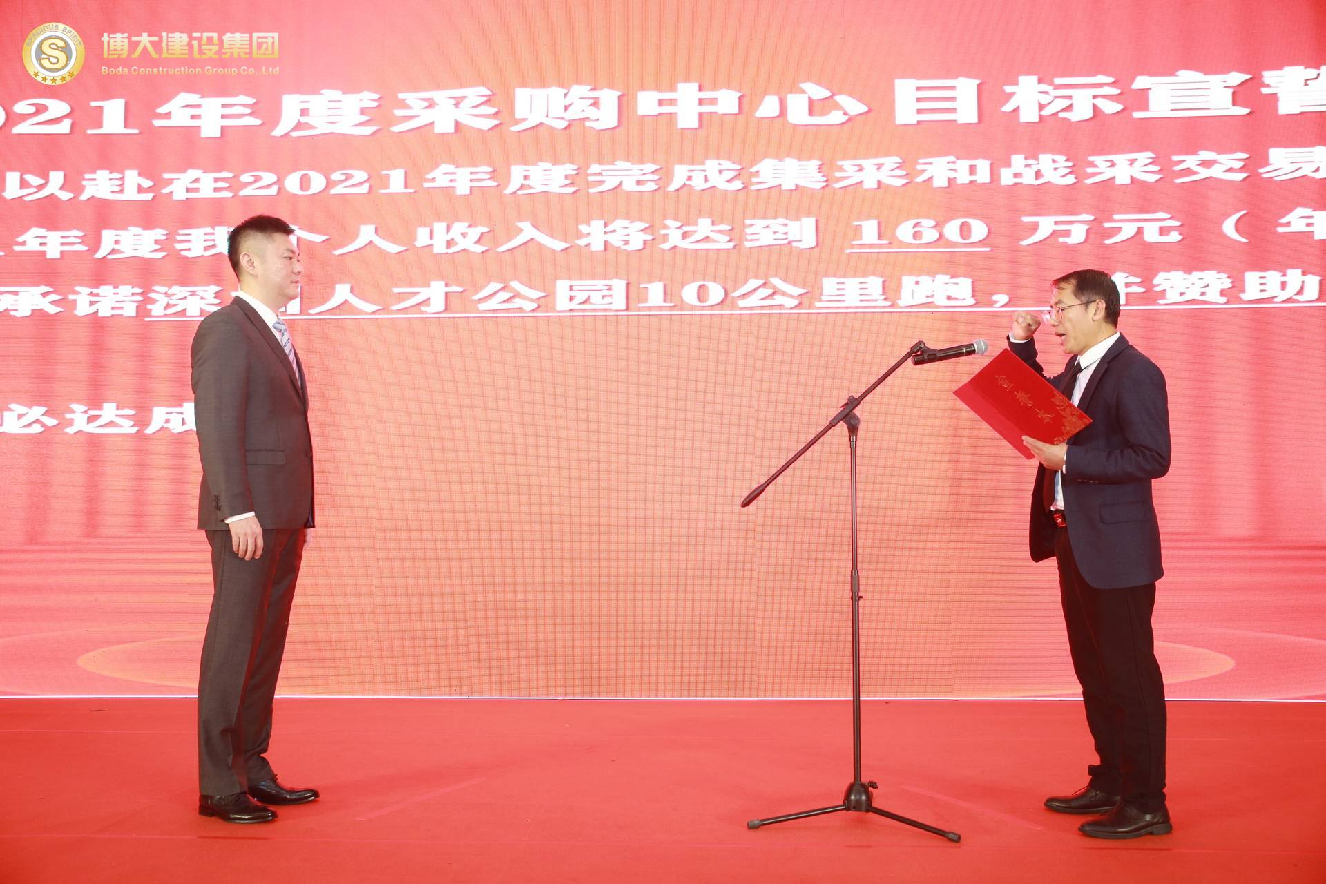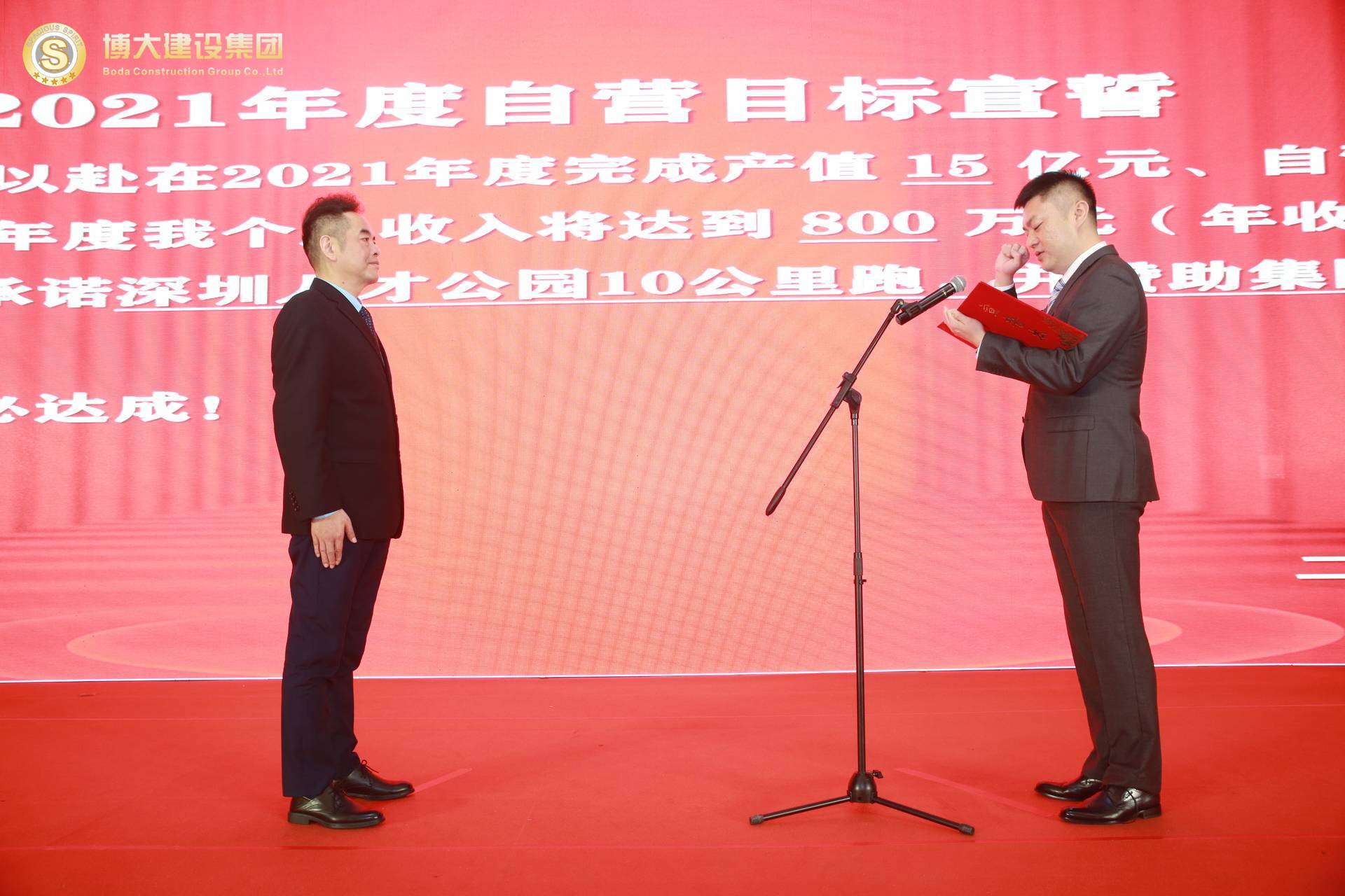 各戰(zhàn)區(qū)、中心、工廠負(fù)責(zé)人逐一上臺(tái),在全體合伙人的見(jiàn)證下對(duì)2021年的部門目標(biāo)和個(gè)人收入目標(biāo)莊嚴(yán)宣誓,洪董代表集團(tuán)對(duì)股東宣誓!