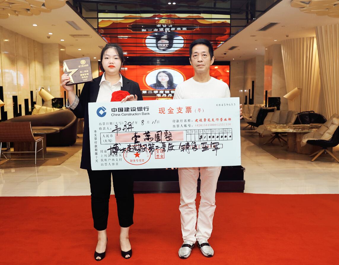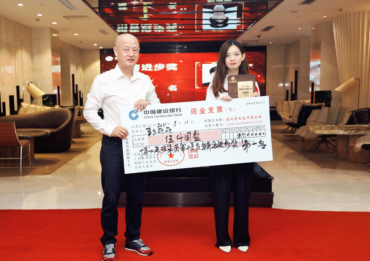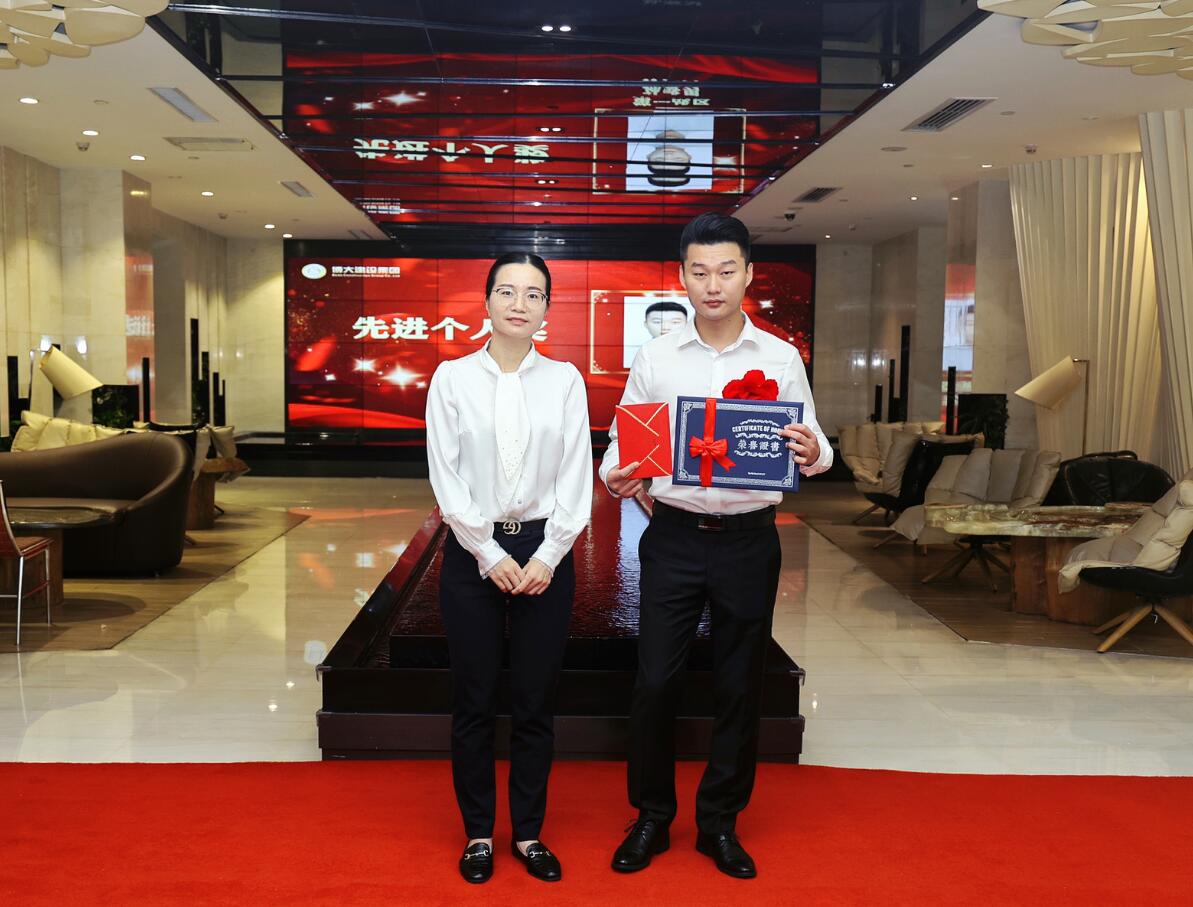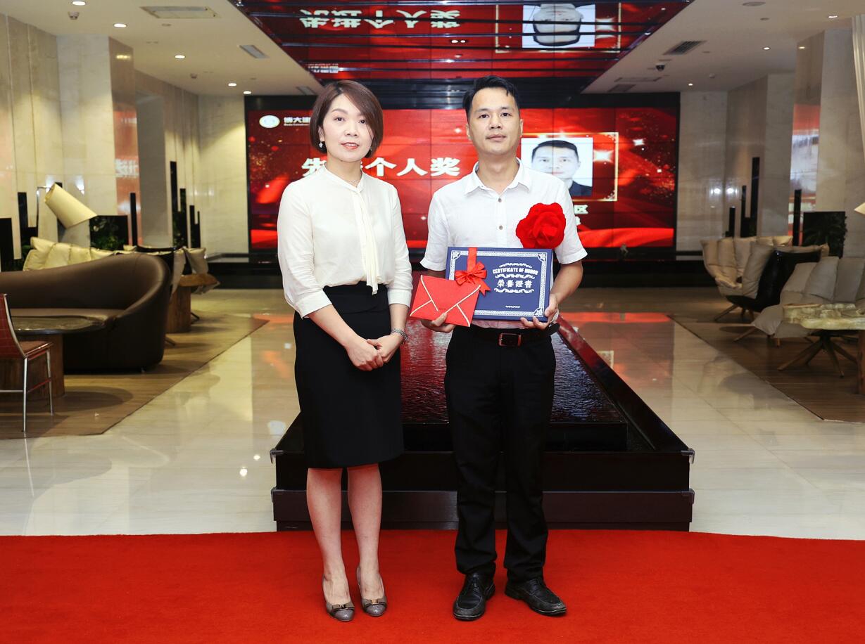 集團(tuán)董事、運(yùn)營(yíng)總裁黃悠為銷售進(jìn)步獎(jiǎng)獲得者葉繼平頒獎(jiǎng)
