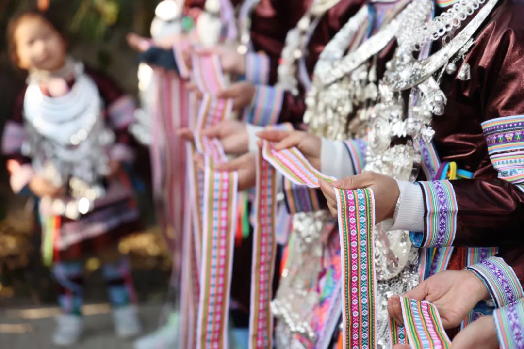 圖 | 當地侗族群眾給客人送上民族獨有的寓意歡迎和祝福的彩帶