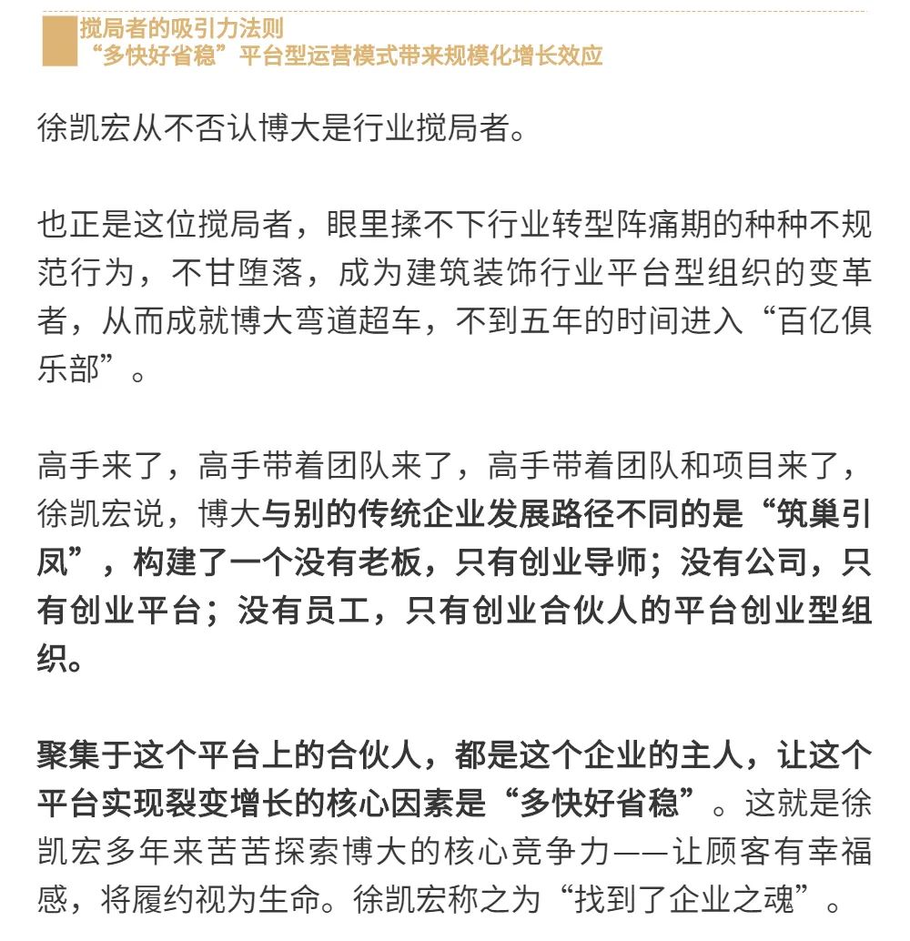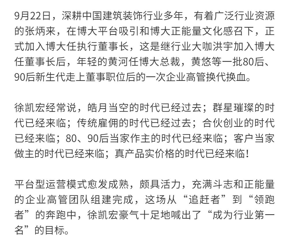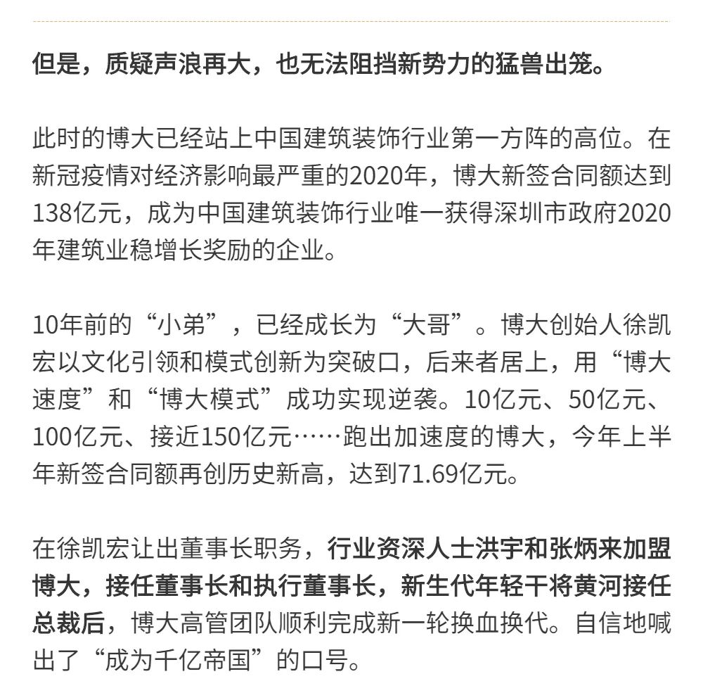 恰逢博大建設集團再次躍升至中國建筑裝飾行業百強第3名的喜訊,現把兩篇深度好文再次轉發,以饗讀者。