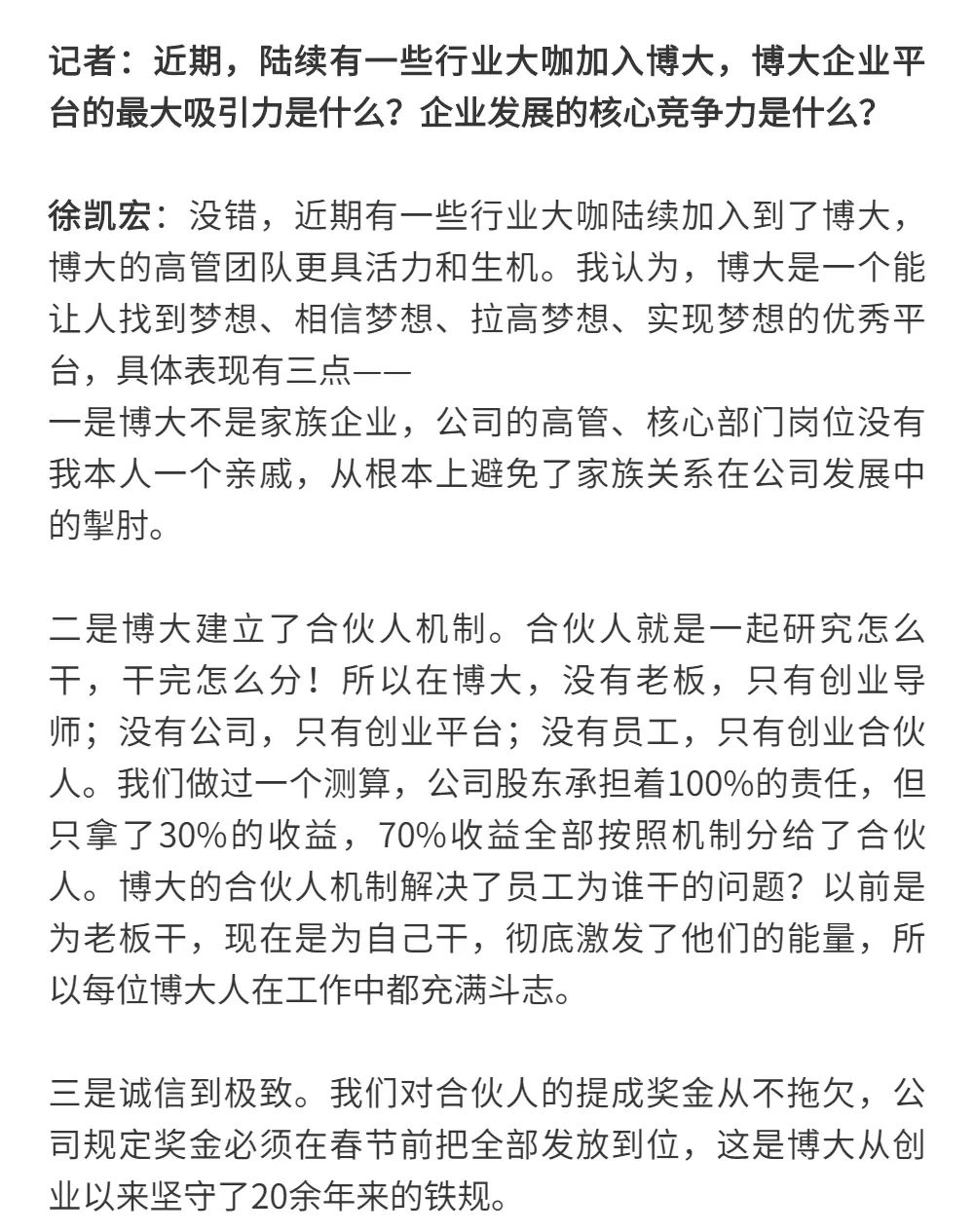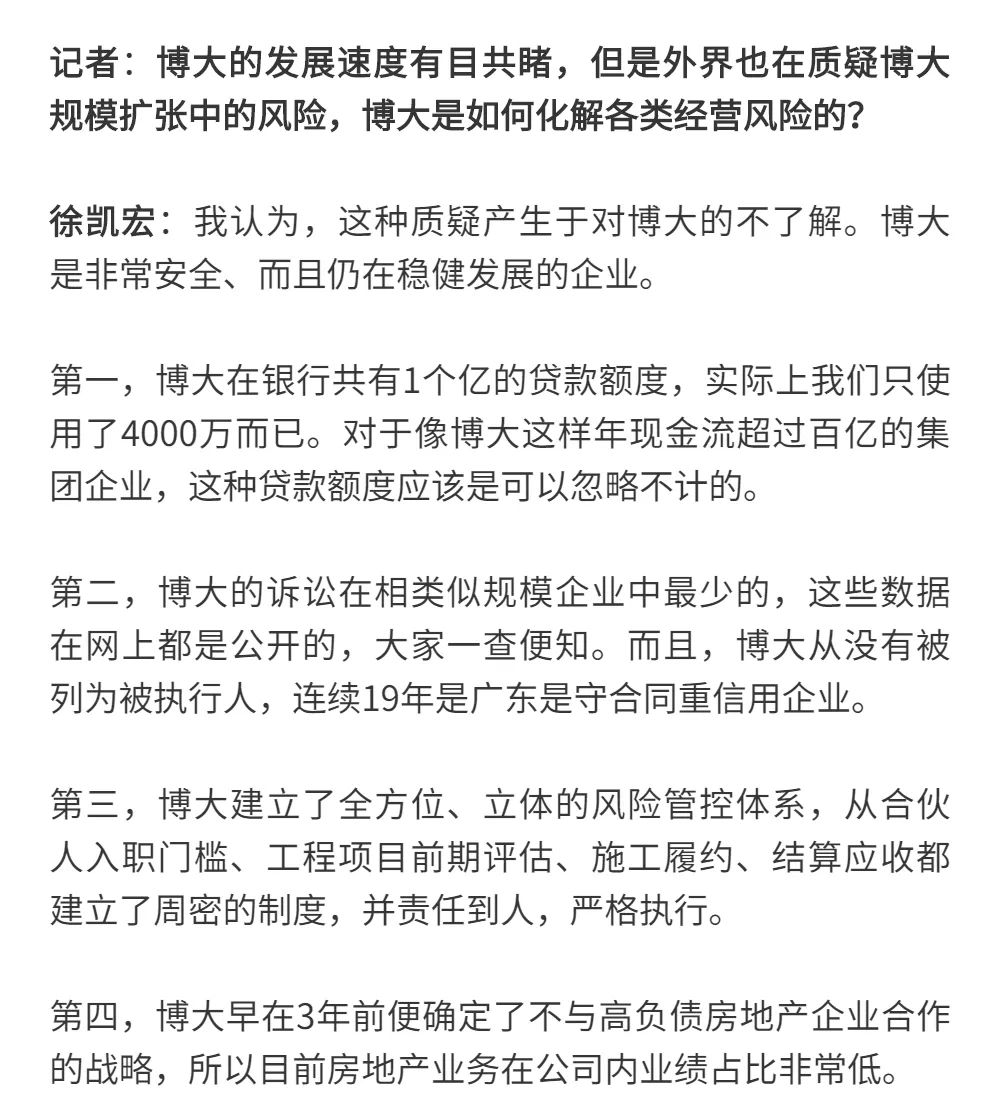 博大以雷霆之勢迅速崛起,吸引了行業的高度關注,行業權威媒體《中華建筑報》數次深入博大一線調研走訪,并對創始人徐凱宏先生進行了坦誠的訪談,以探討和總結博大發展的秘籍,并寫就了《進擊的博大:從高速到高質量的創新逆襲》和《對話徐凱宏 | 博大正沿著高質量發展道路堅定前行》兩篇文章。